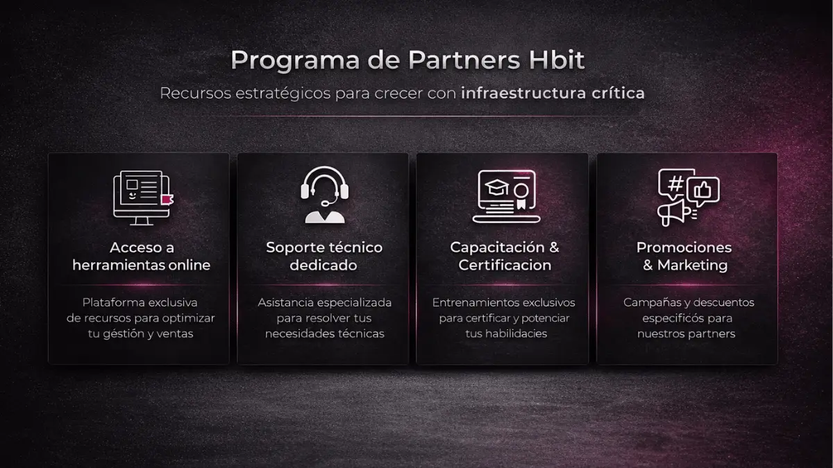Cada solución Hbit está respaldada por soporte técnico especializado y un ecosistema de partners capacitados para garantizar continuidad y respuesta oportuna.